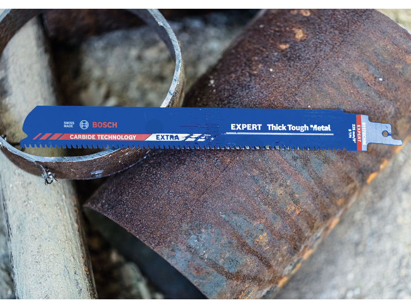 Dlouhá životnost při řezání silného houževnatého kovu! Řezání silných kovů, jako jsou ocelové profily nebo těžké litinové trubky, pravděpodobně není oblíbená část vaší práce. Instalatéři, renovátoři i demoliční pracovníci vědí, že je to náročný úkol, který i s výkonnou pilou ocaskou vyžaduje fyzickou sílu a spoustu úsilí. List EXPERT Thick Tough Metal nejen řeže silný kov, ale nabízí výjimečnou životnost i při tom nejnáročnějším používání. S pilovým listem do pily ocasky Bosch EXPERT Thick Tough Metal si usnadníte řezání silné oceli a litiny.