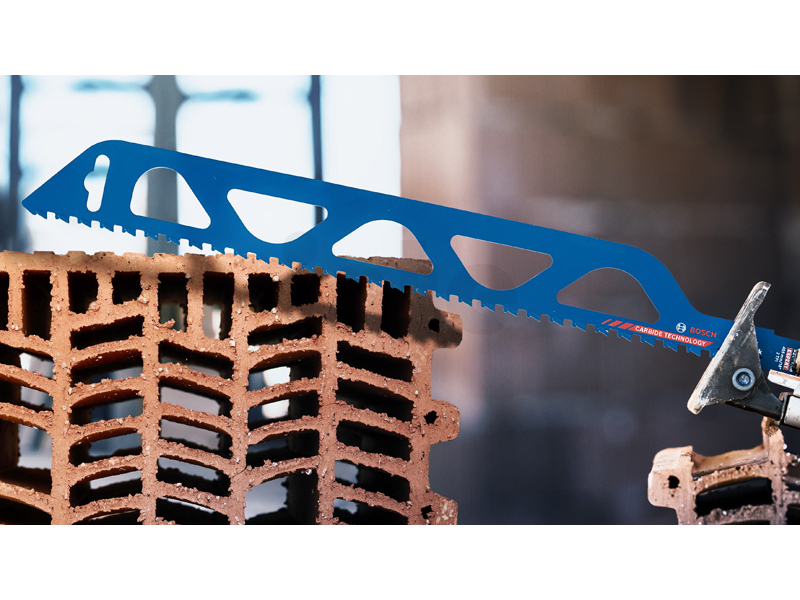 Dlouhá životnost při řezání dutých cihel! Stavebníkům a zedníkům umožňuje rychle a produktivně řezat duté cihly přímo na místě práce. Většina pilových listů do pily ocasky ale v tak abrazivních minerálních materiálech dlouho nevydrží. Se speciálním karbidovým listem, jako je EXPERT Hollow Brick, mohou zedníci řezat duté cihly na míru, pohodlně a bez ničení ostří listů. Díky pilovému listu do pily ocasky Bosch EXPERT Hollow Brick se pila ocaska rychle stává oblíbeným nástrojem zedníků. Umožňuje řezat cihly a bloky na požadovanou velikost díky Bosch Carbide Technology.