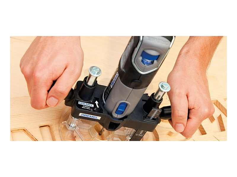 Obsluha je jednoduchá: stačí nasadit frézovací příslušenství na nástroj Dremel, upevnit nástavec frézky pomocí dodaného klíče a nastavit požadovanou hloubku. Práce je díky ergonomickému designu pohodlná a intuitivní.