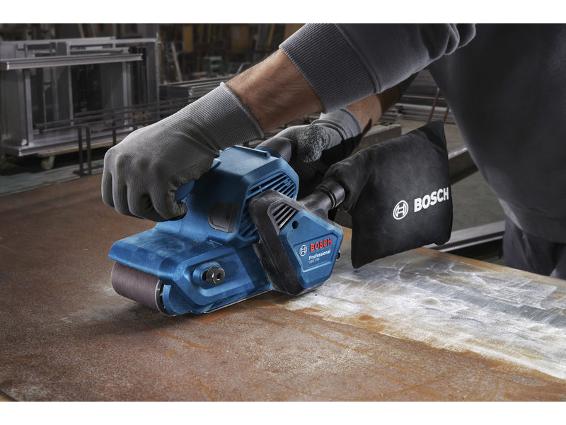 Pásová bruska GBS 750, Broušení velkých objemů dřeva může být velmi časově náročné a únavné. Naše pásová bruska GBS 750 Professional zkracuje dobu broušení a zvyšuje celkovou efektivitu díky vynikajícímu úběru materiálu poháněnému 850W motorem. Díky ergonomickému designu, vyvážené hmotnosti 3,6 kg a ovládání jednou nebo oběma rukami se pohodlně používá i po dlouhé hodiny. Vynikající finální kvalitu zaručuje měkký polštářek filtrující vibrace spolu s pevnou a plochou deskou pro ideální stabilitu nářadí při broušení. Strávíte méně času opravováním náhodných škrábanců, protože pás během broušení zůstává vystředěný. Uvidíte, že i když toto nářadí odstraňuje materiál rychleji, udržuje díky své vynikající rychlosti zachycování prachu pracovní prostor čistý. Se speciálně navrženým sáčkem na prach se zipem je vysypávání prachu rychlejší a snazší. Pásová bruska Bosch GBS 750 Professional je ideální na broušení velkých desek z měkkého a tvrdého dřeva, dřevovláknitých desek, polen atd. a také na odstraňování rzi z kovů. Kartonová krabice (1 619 PC3 240); Textilní brusný pás (F 03E 02G 7JS); Sáček na prach (1 619 PC2 373)