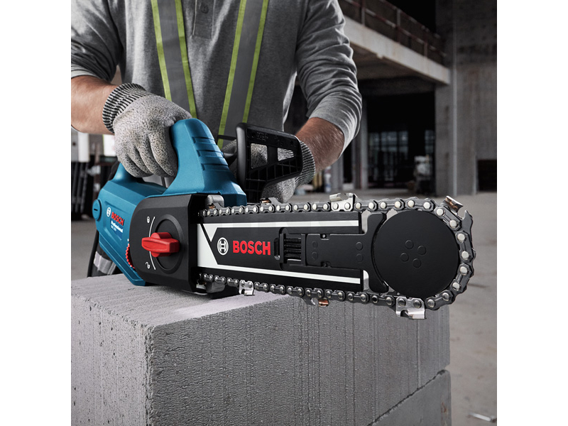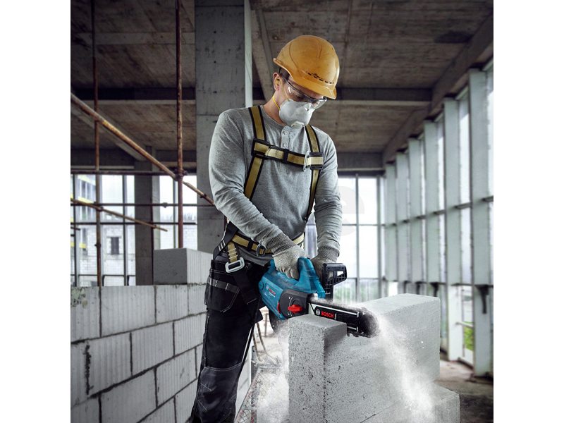 Pila na pórobeton GAC 250, Usnadněte si život s novou pilou GAC 250 AAC od firmy Bosch. S výkonným 1 200W motorem bez námahy prořízne pórobetonové tvárnice různých velikostí. Díky kapacitě řezání 25 cm a maximální rychlosti řetězu 12 m/s² je řezání vysoce efektivní, a to pod každým úhlem. GAC 250 se vyznačuje nízkou hmotností, kompaktními rozměry a ergonomickou rukojetí, a proto se pohodlně používá po celý den a rotační řetěz pily minimalizuje vibrace. Díky jedinečné technologii tvrdokovu od firmy Bosch je pilový kotouč mimořádně pevný a odolný a zaručuje 10krát delší životnost. Pila Bosch GAC 250 AAC řeže bez námahy a efektivně pórobetonové tvárnice různých velikostí a pod různými úhly a minimalizuje vibrace a namáhání svalů uživatele.
