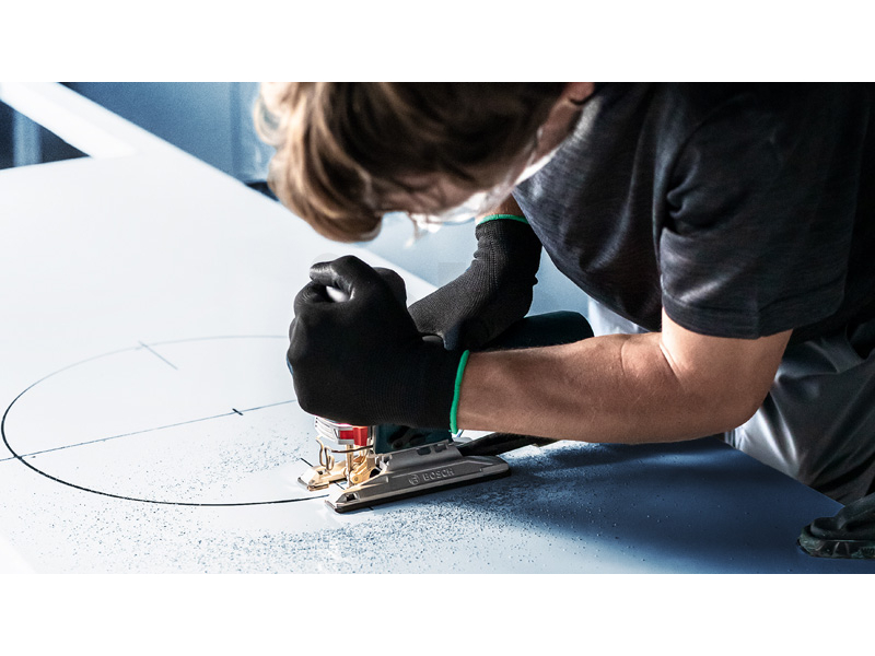 Vysoce přesné řezání laminovaných pracovních desek bez otřepů! Zajistit, aby na viditelné části obráběného materiálu byla „čistá strana řezu“, bylo mezi truhláři a tesaři vždycky umění. Někdy můžete obrobek otočit, jindy lze držet přímočarou pilu vzhůru nohama. Nebo můžete použít plátek EXPERT Hardwood 2-side clean, který díky protisměrným zubům nabízí perfektní řez bez otřepů na obou stranách. Vyrobeno z bimetalu – pásku z rychlořezné oceli spojeného s ohebným ocelovým listem s cílem zajistit pevnost i flexibilitu. Pilový plátek Bosch EXPERT Hardwood 2-side clean je dostatečně robustní na řezání kuchyňských desek z laminované dřevotřísky nebo tvrdého dřeva. K dispozici pro rovné řezy bez otřepů (T308BF) a pro obzvláště přesné úhlové řezy bez otřepů (T308BFP)