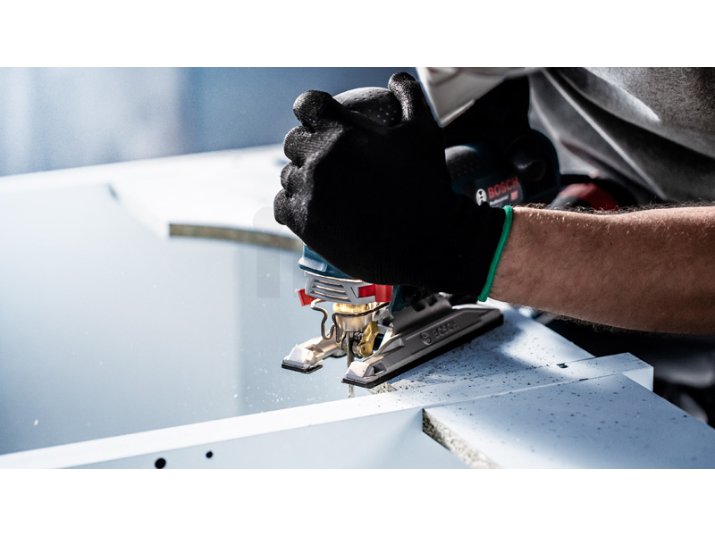 Vysoce přesné řezání laminovaných pracovních desek bez otřepů! Zajistit, aby na viditelné části obráběného materiálu byla „čistá strana řezu“, bylo mezi truhláři a tesaři vždycky umění. Někdy můžete obrobek otočit, jindy lze držet přímočarou pilu vzhůru nohama. Nebo můžete použít plátek EXPERT Hardwood 2-side clean, který díky protisměrným zubům nabízí perfektní řez bez otřepů na obou stranách. Vyrobeno z bimetalu – pásku z rychlořezné oceli spojeného s ohebným ocelovým listem s cílem zajistit pevnost i flexibilitu. Pilový plátek Bosch EXPERT Hardwood 2-side clean je dostatečně robustní na řezání kuchyňských desek z laminované dřevotřísky nebo tvrdého dřeva. K dispozici pro rovné řezy bez otřepů (T308BF) a pro obzvláště přesné úhlové řezy bez otřepů (T308BFP)