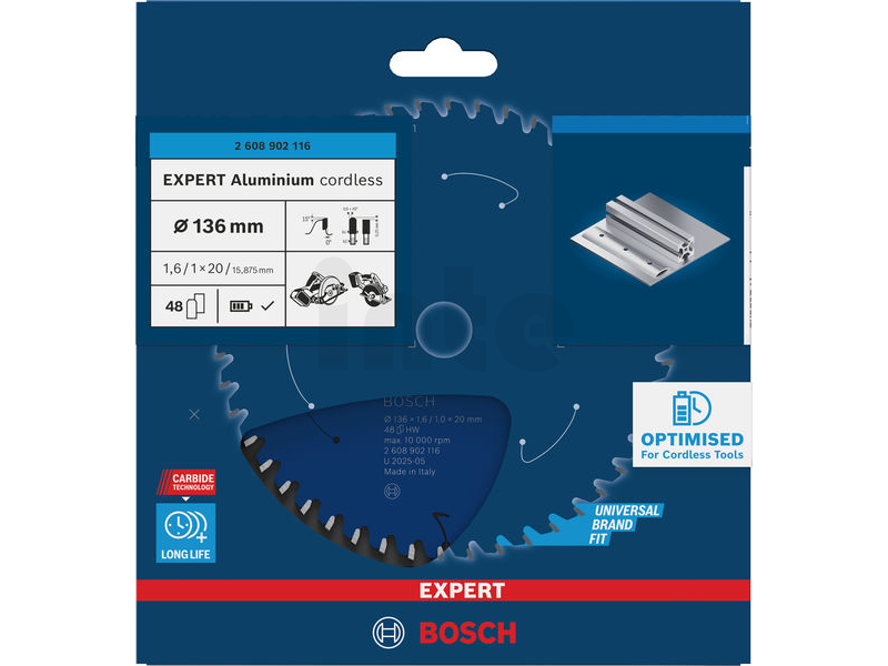 BOSCH Pilový kotouč EXPERT Aluminium cordless pro okružní pilu, 136 × 1,6/1 × 20 mm, T48 2608902116