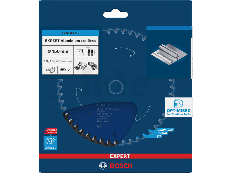 BOSCH Pilový kotouč EXPERT Aluminium cordless pro okružní pilu, 150 × 1,8/1,3 × 20 mm, T48 2608902118