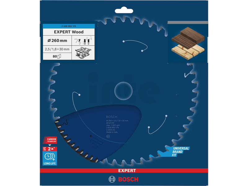 BOSCH Pilový kotouč EXPERT Wood, 260 × 2,5/1,8 × 30 mm, T80 2608902179