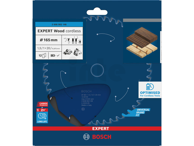BOSCH Pilový kotouč EXPERT Wood cordless, 165 × 1,5/1 × 20 mm, T12 2608902148