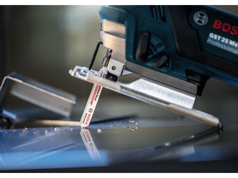Dlouhá životnost při řezání nerezového plechu! Řezání plechů z nerezové oceli je každodenním úkolem pro kovodělníky. Je běžné i při montáži kuchyní a stavbě průmyslových či kancelářských budov. Profesionálové, kteří se této práci věnují, potřebují spolehlivý plátek, který se nepoškozuje. Jen tak se lze vyhnout frustraci z neustálé výměny plátků. Pilový plátek Bosch EXPERT Stainless Steel na tenké materiály se dodává ve dvou verzích: Pilový plátek T118 AHM pro řezy do tenkého plechu má velmi jemnou rozteč zubů. Verze T118 EHM se střední roztečí ozubení je pak nejlepší volbou pro řemeslníky, kteří chtějí řezat středně silné plechy z nerezové oceli té nejvyšší pevnosti nebo a tenkostěnné trubky.