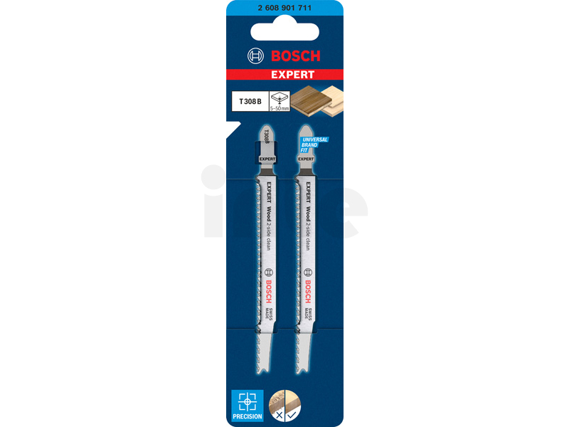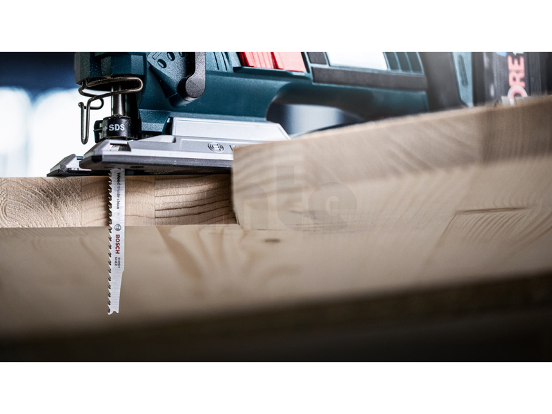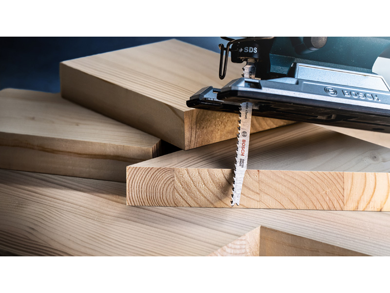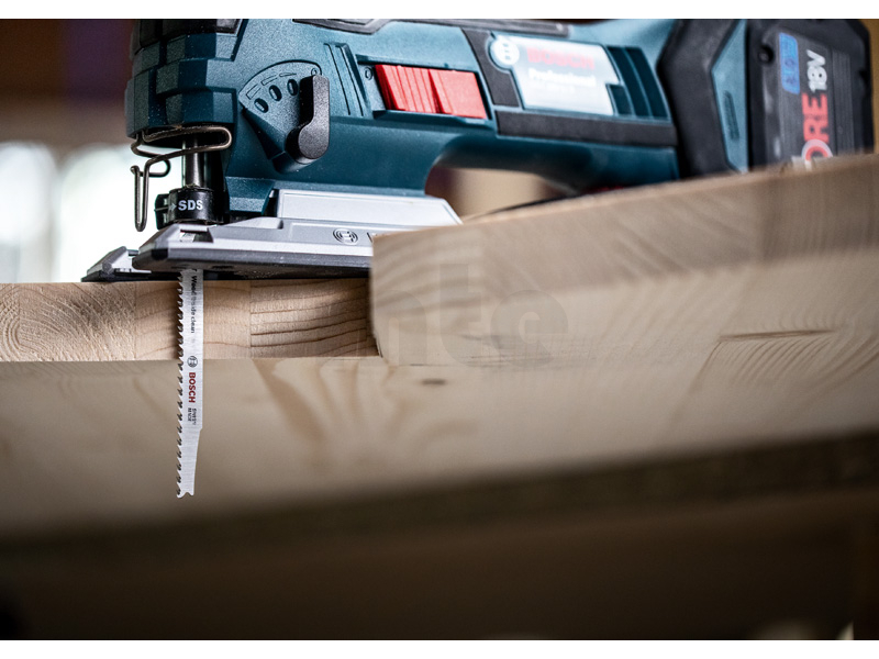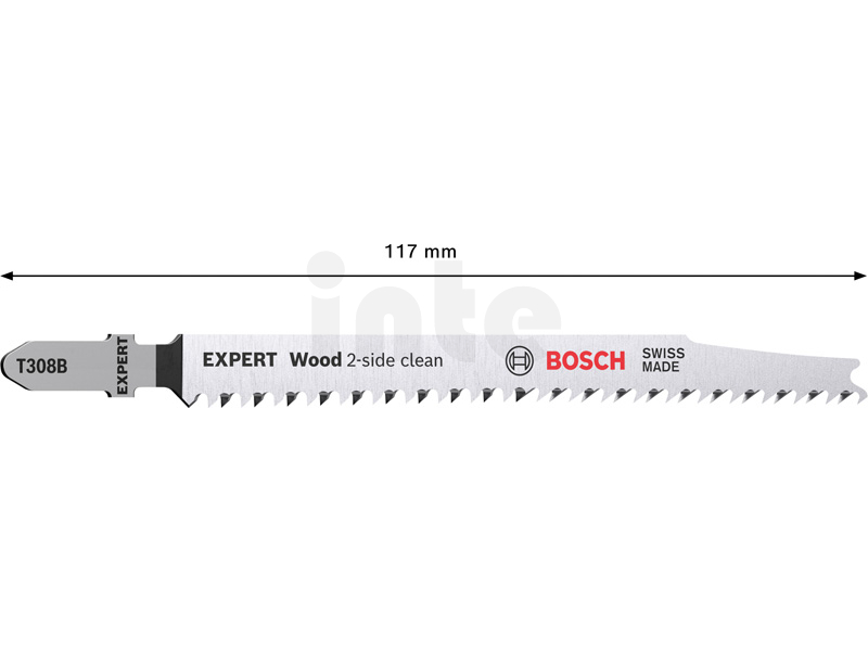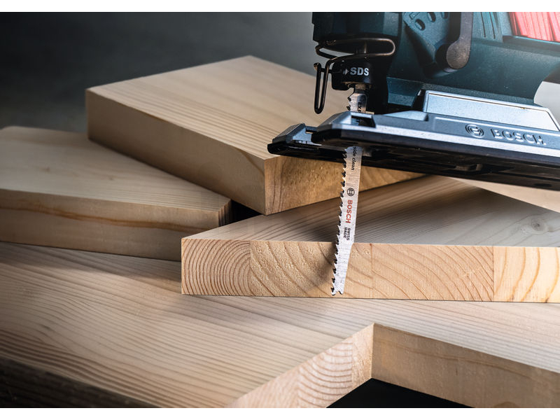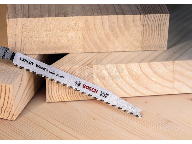 Velmi přesné řezání dřeva bez otřepů! Zajistit, aby na viditelné části obráběného materiálu byla „čistá strana řezu“, bylo mezi truhláři a tesaři vždycky umění. Někdy můžete obrobek otočit, jindy lze držet přímočarou pilu vzhůru nohama. Nebo můžete použít plátek EXPERT Wood 2-side clean, který díky dvěma řadám zubů nabízí perfektní řez bez otřepů na obou stranách. Se svými velmi ostrými a přesně broušenými zuby je pilový plátek Bosch EXPERT Wood 2-side clean vhodný pro řezání měkkého dřeva do tloušťky 50 mm. Nábytkáři mohou získat perfektní povrch a neztrácet čas broušením po každém řezu přímočarou pilou. K dispozici pro rovné řezy (T308B), pro křivkové řezy (T308BO) a pro přesné úhlové řezy (T308BP)