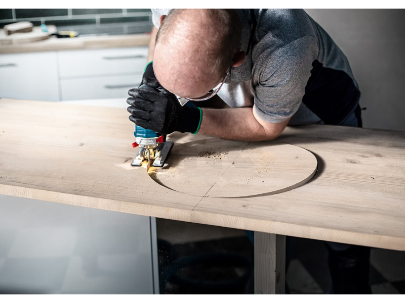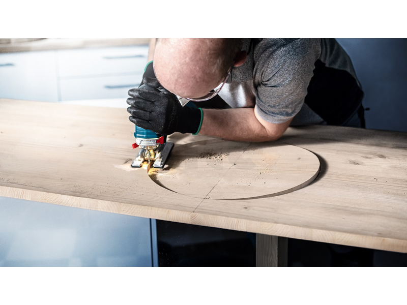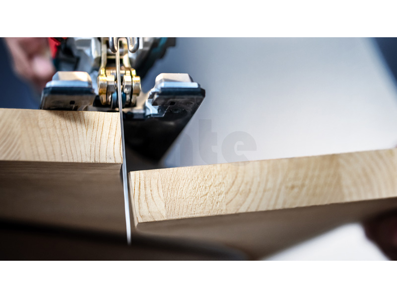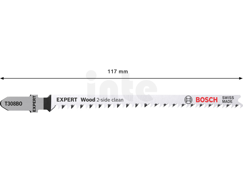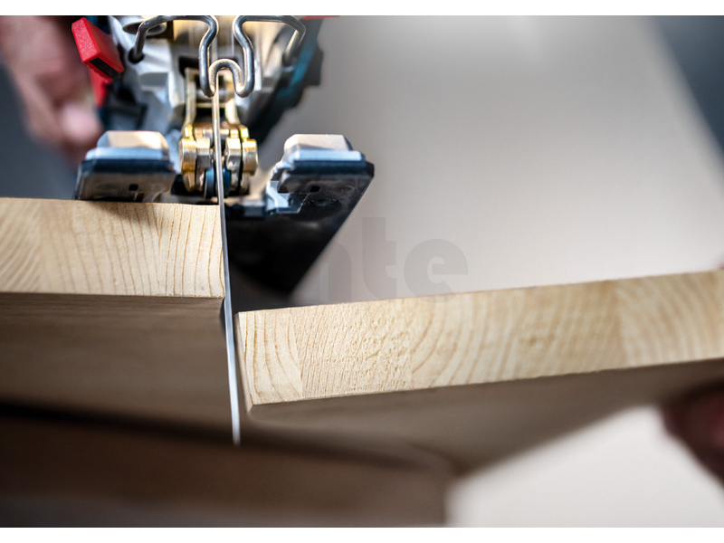 Velmi přesné řezání dřeva bez otřepů! Zajistit, aby na viditelné části obráběného materiálu byla „čistá strana řezu“, bylo mezi truhláři a tesaři vždycky umění. Někdy můžete obrobek otočit, jindy lze držet přímočarou pilu vzhůru nohama. Nebo můžete použít plátek EXPERT Wood 2-side clean, který díky dvěma řadám zubů nabízí perfektní řez bez otřepů na obou stranách. Se svými velmi ostrými a přesně broušenými zuby je pilový plátek Bosch EXPERT Wood 2-side clean vhodný pro řezání měkkého dřeva do tloušťky 50 mm. Nábytkáři mohou získat perfektní povrch a neztrácet čas broušením po každém řezu přímočarou pilou. K dispozici pro rovné řezy (T308B), pro křivkové řezy (T308BO) a pro přesné úhlové řezy (T308BP)