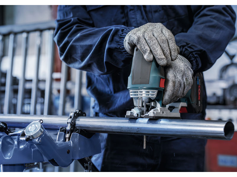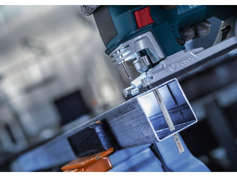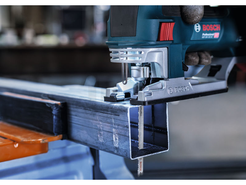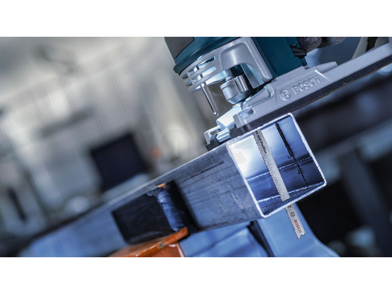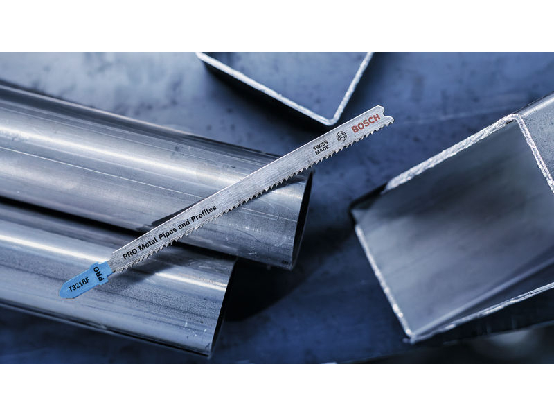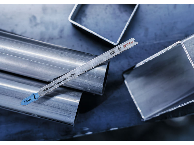 Dlouhá životnost při řezání kovových trubek a profilů! Pokud chcete přímočarou pilou řezat kovové trubky a profily, potřebujete plátek, který je tvrdý, flexibilní a dostatečně dlouhý, aby se s tímto typem kovových prvků efektivně vypořádal. Přesně jako pilový plátek PRO Metal Pipes and Profiles T321BF s dlouhou životností, který jsme pro tuto práci vyrobili. Pilový plátek PRO Metal Pipes and Profiles T321BF pro přímočaré pily je vyrobený z bimetalu: Má ozubení z rychlořezné oceli (HSS) spojené s tělem z uhlíkové oceli (HCS). To znamená, že je odolný a má tvrdost, kterou potřebujete k řezání kovových trubek a profilů se stěnami do tloušťky 6 mm. Zkosené tělo plátku, tenká řezná hrana a odolné frézované, zvlněné zuby zajišťují hladký průběh řezání. Větší délka plátku umožňuje řezat trubky a profily až o průměru 65 mm.