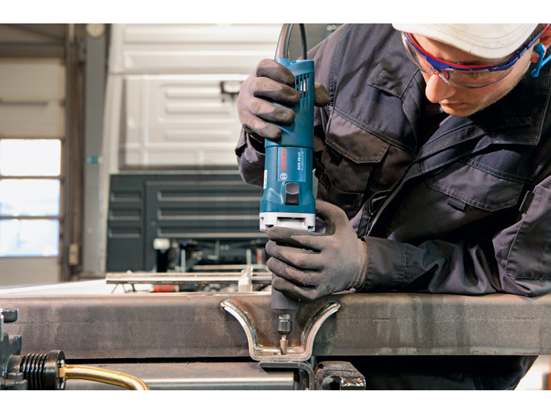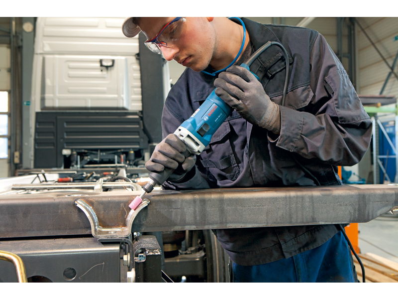 Přímá bruska GGS 28 LC, Perfektní manipulace pro náročné broušení, Výkonný motor 650 W s pozvolným rozběhem pro rychlý postup práce, Dlouhé, štíhlé brusné vřeteno – mimořádně vhodné pro použití na špatně přístupných místech, KickBack Control: rozpozná-li zablokování, okamžitě vypne nářadí – pro vysokou míru ochrany uživatele, Klíč 13 mm (číslo náhradního dílu 3 607 950 025); Klíč 19 mm (číslo náhradního dílu 3 607 950 024); Upínací kleština s pojistnou maticí 6 mm (2 608 570 137)