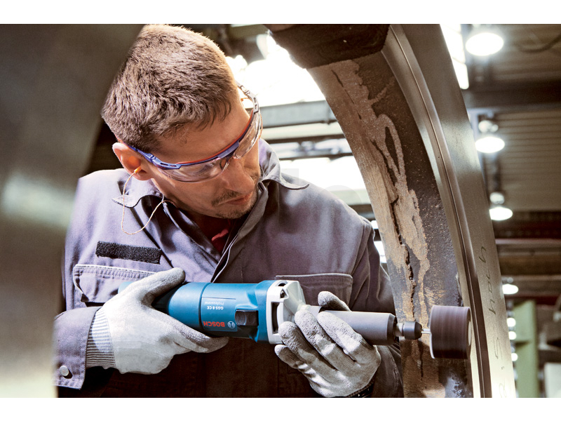 Přímá bruska GGS 8 CE, Výkonný specialista na povrchy, Výkonný motor 750 W s pozvolným rozběhem pro rychlý postup práce, Šikovná konstrukce a vysoký točivý moment – ideální pro broušení ploch s lamelovými talíři, kartáči a dalším příslušenstvím, KickBack Control: rozpozná-li zablokování, okamžitě vypne nářadí – pro vysokou míru ochrany uživatele, Klíč 13 mm (číslo náhradního dílu 3 607 950 025); Klíč 19 mm (číslo náhradního dílu 3 607 950 024); Upínací kleština s pojistnou maticí 6 mm (2 608 570 137)