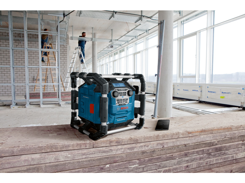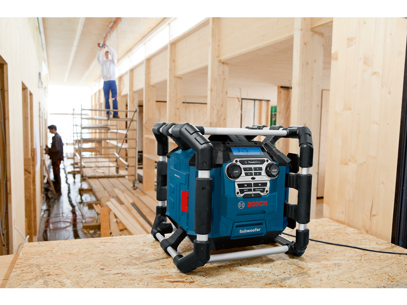 Rádio GPB 18V-5 C, GPB 18V-5 C Professional je robustní rádio, které obohatí každé pracoviště o živý zvuk a příjemnou hudbu. Rádio je kompatibilní s různými zdroji, jako je Bluetooth®, FM a AUX a nabízí flexibilitu, která umožní na staveništi rozeznít rockové skladby a mnoho dalšího. Mimořádná robustnost rádia GPB 18V-5 C Professional je zajištěna ochranným rámem, který ustojí drsné podmínky na pracovišti. Živý a silný zvuk tohoto rádia zajišťují čtyři reproduktory s kombinovaným výkonem 20 W a integrovaný subwoofer (20 W) pro působivé basy. Tato jednotka je ideální na přehrávání rozhlasových pořadů nebo hudby přes Bluetooth®. Je kompatibilní se všemi akumulátory Bosch Professional 18V. Kartonová krabice; 1× pomocný kabel; 2× baterie 1,5 V LR6 (AA)