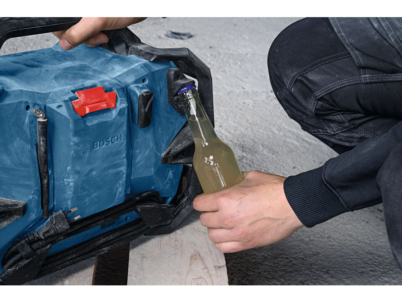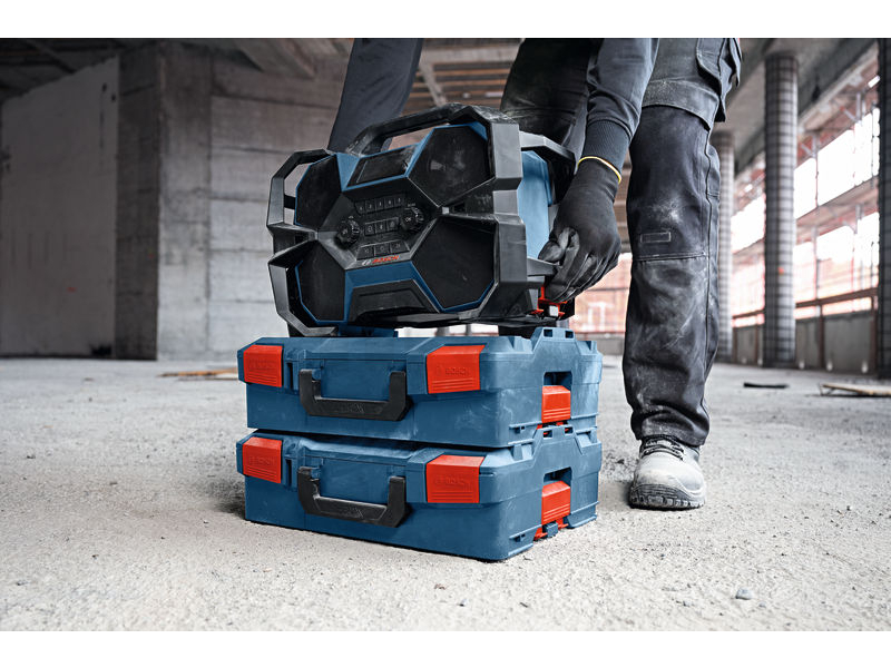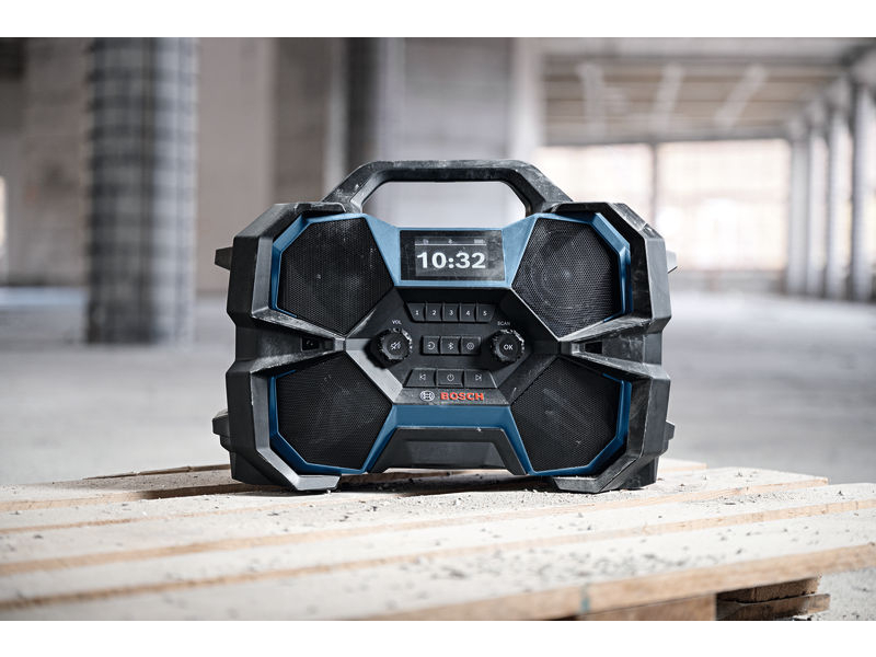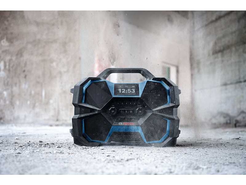 Rádio GPB 18VH-6 SRC, Naplňte si snadno pracovní prostor svou oblíbenou hudbou. Naše hybridní rádio GPB 18VH-6 SRC Professional poskytuje vynikající křišťálově čistý zvuk prostřednictvím více zdrojů: DAB+, FM, Bluetooth®, AUX, a Multi-Speaker Sound. Multi-Speaker Sound umožňuje sdílet a propojovat hudební streamy na více kompatibilních zařízeních prostřednictvím Bluetooth®. Toto robustní rádio má ochranný rám a díky kompatibilitě s L-BOXXem se snadno přepravuje – stačí rádio nacvaknout na jiný L-BOXX a můžete vyrazit. Když je rádio napájeno ze sítě, můžete jeho pomocí nabíjet 12V a 18V akumulátory. Model GPB 18VH-6 SRC Professional je vybaven portem USB pro nabíjení chytrých telefonů. Má také jednoduchý mechanismus pro vyjmutí 18V akumulátoru: Stačí zatáhnout za páčku a akumulátor se odemkne a vysune – není třeba mačkat červené tlačítko a krkolomně akumulátor z přihrádky vytahovat. Kompatibilní s profesionálním 18V systémem Bosch a aliancí akumulátorů různých značek AMPShare. Je rovněž kompatibilní s celým profesionálním 12V systémem Bosch. Otvírák na láhve (1 619 PS0 976); Ochranná fólie na obrazovku; 2× baterie 1,5 V LR03 (AAA); Kartonový box