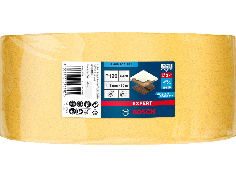 BOSCH Role brusného papíru EXPERT C470 pro ruční broušení 115 mm × 50 m, P120 2608900981