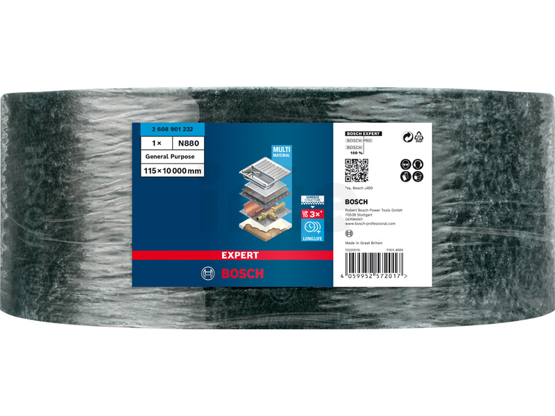 BOSCH Role brusného rouna EXPERT N880 pro ruční broušení 115 mm × 10 m, All Purpose 2608901232