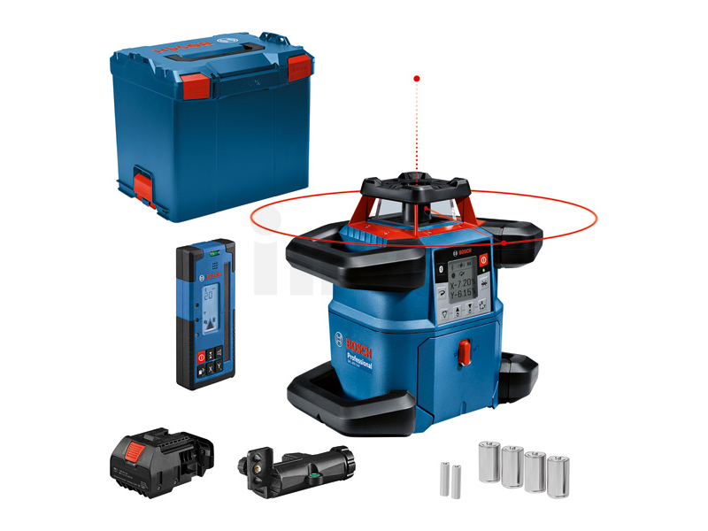 Rotační laser GRL 600 CHV, Odolný, prověřený na pracovišti – robustní GRL 600 CHV Professional obstojí i v tom nejdrsnějším prostředí. Robustní design zajišťuje ochranu před nárazy a pyšní se stupněm krytí IP68 vůči prachu a vodě – včetně oddílu na akumulátor pro vysoce flexibilní práci i za nepříznivého počasí. Poskytuje pohodlnou konektivitu a zajišťuje soustředěnější práci i méně plýtvání časem. Obsluha přístroje je intuitivní díky displeji a přístupu k aplikaci pro vzdálenou nivelaci, která vizualizuje všechny funkce, včetně nastavení duálního sklonu, a šetří drahocenný čas. Tento vysoce přesný laser nabízí dlouhou dobu chodu, a to jak s 18V akumulátorem, tak s alkalickými bateriemi pro nepřetržitou práci. Používejte toto nářadí venku při výkopových pracích, na stavbu bednění, při krajinářství či práci na fasádě. GRL 600 CHV je rovněž vybaven vysoce kvalitním přijímačem s rozsahem příjmu 125 mm, oboustranným displejem a funkcí odsazení v milimetrech. Kalibrace nářadí je snadná a rychlá – podrobné pokyny v intuitivní aplikaci šetří čas i zdroje a zajišťují přesné výsledky při každé práci. Používejte praktický „maskovací režim“ dostupný v aplikaci, který zabraňuje odleskům a vzájemnému rušení s ostatními zařízeními na pracovišti. Laserový přijímač LR 60 Professional (0 601 069 P00); Držák přijímače RB 60 Professional; Adaptér pro akumulátory BA 1; 4× baterie 1,5 V LR20 (D); 2× baterie 1,5 V LR6 (AA); L-BOXX 374 (1 600 A01 2G3)