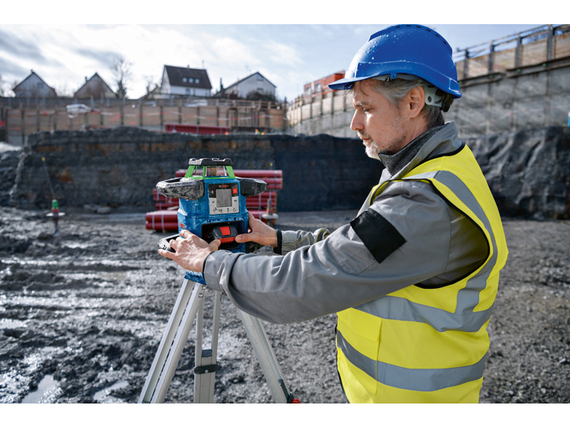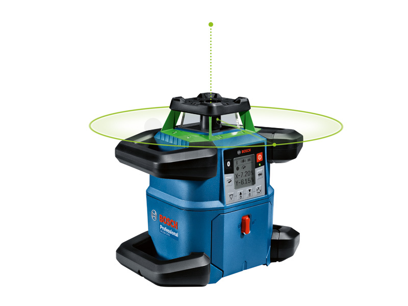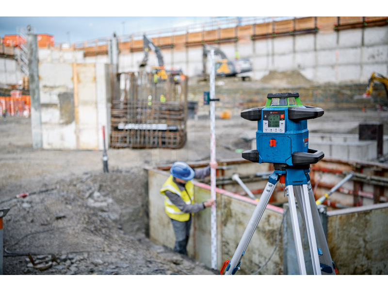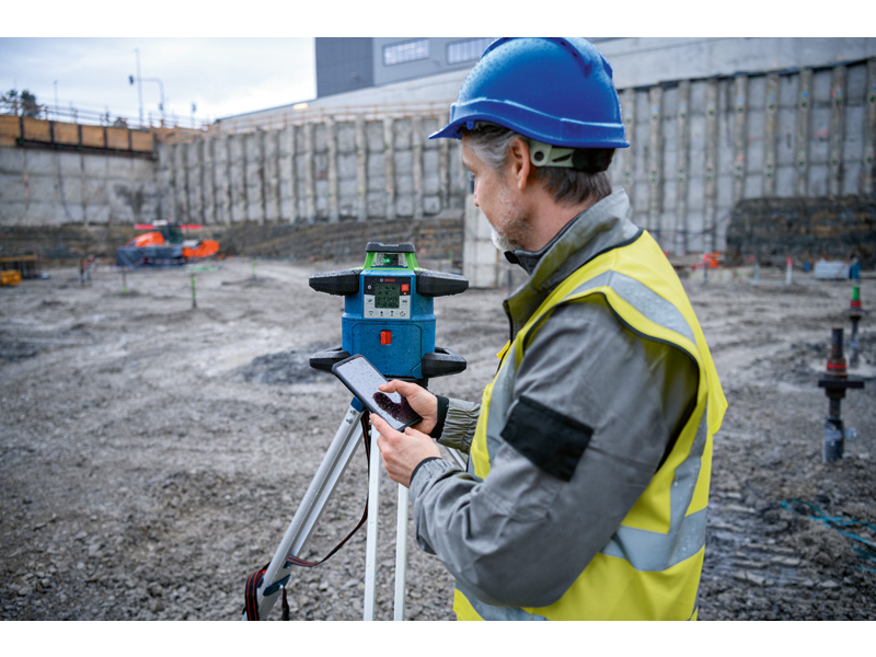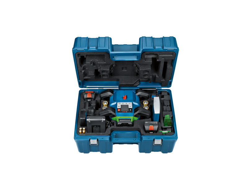 Rotační laser GRL 650 CHVG, Robustní rotační laser GRL 650 CHVG Professional s konektivitou Bluetooth® pozdvihá nivelaci na staveništi na novou úroveň přesnosti a účinnosti. Technologie zeleného laseru zajišťuje vyšší viditelnost za různých světelných podmínek. Rotační laser se pyšní odolnou konstrukcí do drsných podmínek na pracovišti i do nepříznivého počasí, ustojí převržení stativu a pád z výšky až 2 metry a vyznačuje se stupněm krytí IP68 proti prachu a vodě. Využití aplikace Levelling Remote k přehledu o nastavení a vzdálenému ovládání šetří čas a umožňuje naprosté soustředění na práci. Všestranný přístroj GRL 650 CHVG Professional se nejlépe hodí na venkovní nivelaci a stupňování, například při stavbě příček, montáži stropu a vzduchotechniky. Duální zdroj napájení zajišťuje dlouhou dobu chodu s využitím dobíjecího akumulátoru Bosch 18 V Li-ion nebo alkalických baterií D-Cell. Optimální pohodlí díky špičkovým prvkům, jako je displej, duální sklon, paměť sklonu a vysoce kvalitní přijímač (LR 65 G Professional). Laserový přijímač LR 65 G Professional (0 601 069 T00); Držák přijímače RB 60 Professional; Adaptér pro akumulátory BA 1; 4× baterie 1,5 V LR20 (D); 2× baterie 1,5 V LR6 (AA); L-BOXX 374 (1 600 A01 2G3)