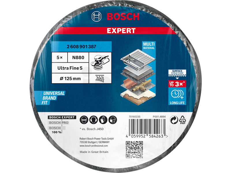 BOSCH Rounový kotouč EXPERT N880 pro vibrační brusky 125 mm, jemný, 5 kusů 2608901387