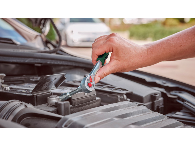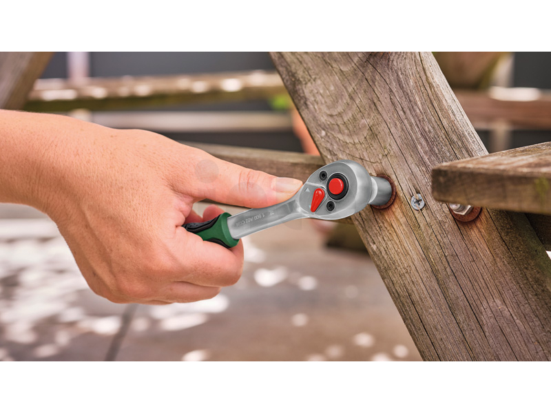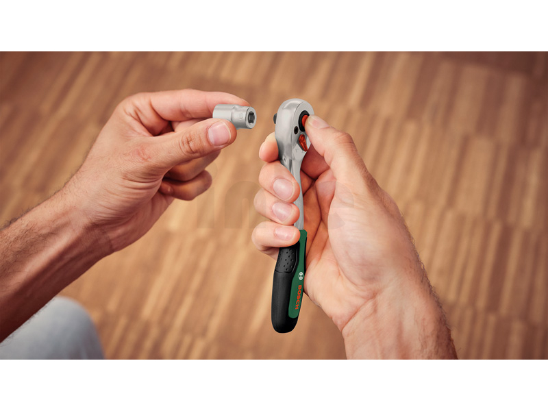 Ruční nářadí ¼" ráčna; Kompaktní, výkonná a všestranná 1/4" ráčna na různé kutilské práce; Vysoce výkonná 1/4" ráčna s maximálním krouticím momentem 93 Nm, což je minimálně o 50 % více, než je norma ISO; Kompaktní design a zahnutý tvar hlavy pro snadnou manipulaci a přístup do úzkých prostorů; Ozubení vyrobené metodou práškové metalurgie se 72 zuby pro pracovní úhel 5°; S aretačním tlačítkem pro bezpečné upevnění a uvolnění nástrčného klíče a intuitivním přepínačem pro otáčení doleva a doprava; Optimální pohodlí a ovládání díky ergonomické rukojeti s měkkou úchopovou plochou; Podle normy ISO 3315