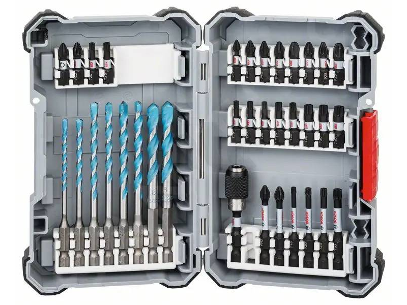 BOSCH Sada 35 kusů Pick and Click spirálových vrtáků MultiConstruction a šroubovacích nástavců Impact Control 2607017570