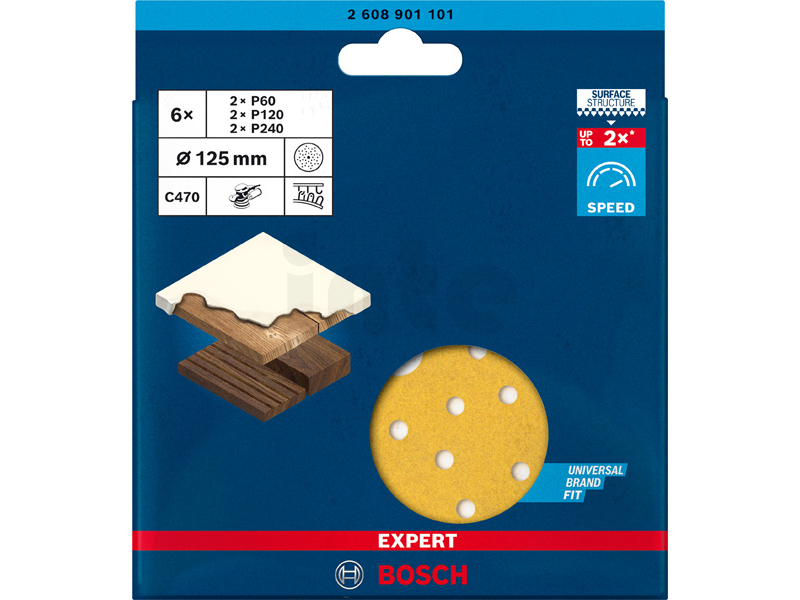 BOSCH Sada brusných papírů EXPERT C470 s více otvory pro vibrační brusky 125 mm, G 60/120/240, 6 ks 2608901101