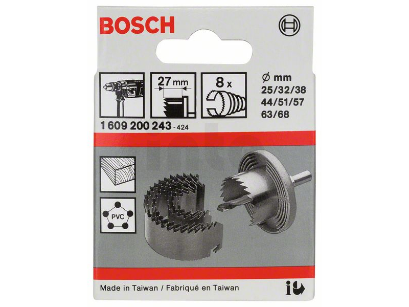 Manipulace s děrovkou je snadná, a proto je ideální pro instalace vzduchového a větracího potrubí a též při osazování elektroinstalačních krabic. Je k dispozici v různých průměrech a dodává se s upínacím systémem a středicími vrtáky. Směs hrubých a středních zubů zajišťuje rychlé řezání a úhledný výsledek práce. Děrovku používejte při práci s tvrdým a měkkým dřevem, dýhovaným dřevem, laminovanými dřevotřískovými deskami a plastem