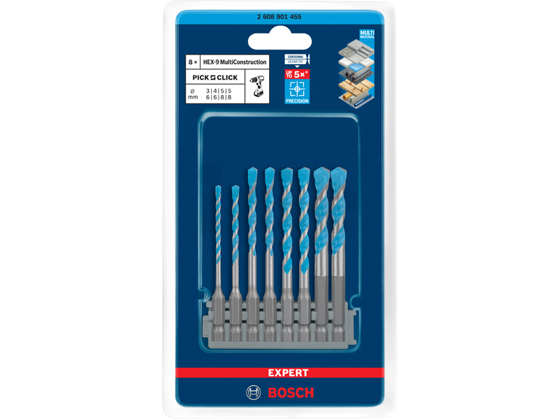 BOSCH Sada vrtáků EXPERT HEX-9 MultiConstruction 3–8 mm pro Pick & Click 2608901455