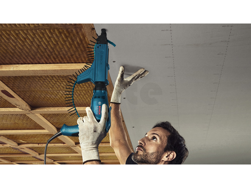 Sádrokartonářský šroubovák GTB 650, Se síťovým šroubovákem GTB 650 Professional je montáž sádrokartonových konstrukcí i práce s lehkou ocelí a plechy pohodlná, efektivní a dostupná. Tento efektivní šroubovák s motorem s 5 000 ot/min lze připojit k automatickému zásobníku na šrouby MA55 pro rychlou montáž suchých staveb. Jeho oboustranný hloubkoměr umožňuje povolování šroubů bez sejmutí hloubkoměru pro větší pohodlí a bezpečnost. Toto nářadí lze použít se šrouby až do průměru 4 mm do jedné vrstvy sádrokartonu s tenkými ocelovými profily a samořeznými šrouby až do průměru 6 mm do plechu o tloušťce 1,5 mm.