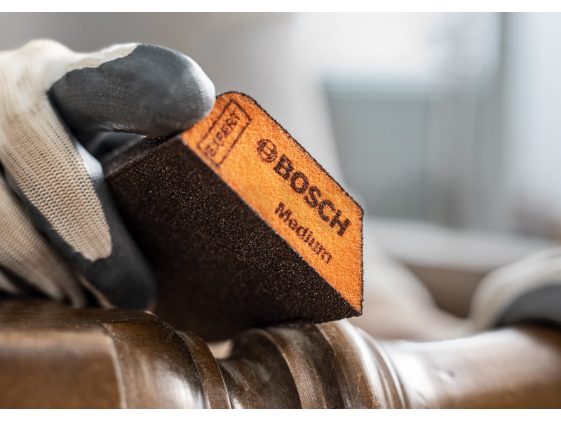 Broušení dřeva i laku a dlouhá životnost! Někdy se ručnímu broušení nic nevyrovná. Problémem je, že běžné brusné papíry se při broušení křivek a hran rychle opotřebují, zanesou nebo polámou. Staré řešení spočívalo v nákupu velkého množství brusných papírů, což vedlo k vysoké spotřebě a plýtvání. Novým řešením jsou brusné pěny s technologií Bosch Surface Structure. Hranaté brusné houby jsou ideální pro broušení rovných povrchů a 90° hran. Brusné houby Bosch EXPERT jsou revolucí v ručním broušení. Jakmile to jednou vyzkoušíte, už nebudete chtít měnit.