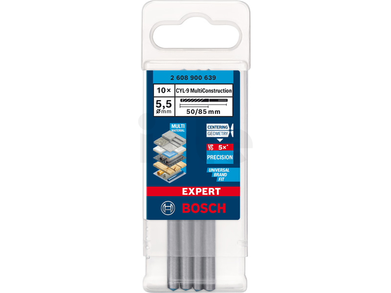 BOSCH Spirálový vrták EXPERT CYL-9 MultiConstruction 5,5 × 50 × 85 mm, 10 ks 2608900639