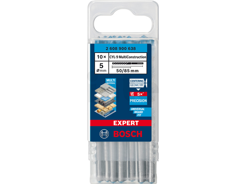 BOSCH Spirálový vrták EXPERT CYL-9 MultiConstruction 5 × 50 × 85 mm, 10 ks 2608900638