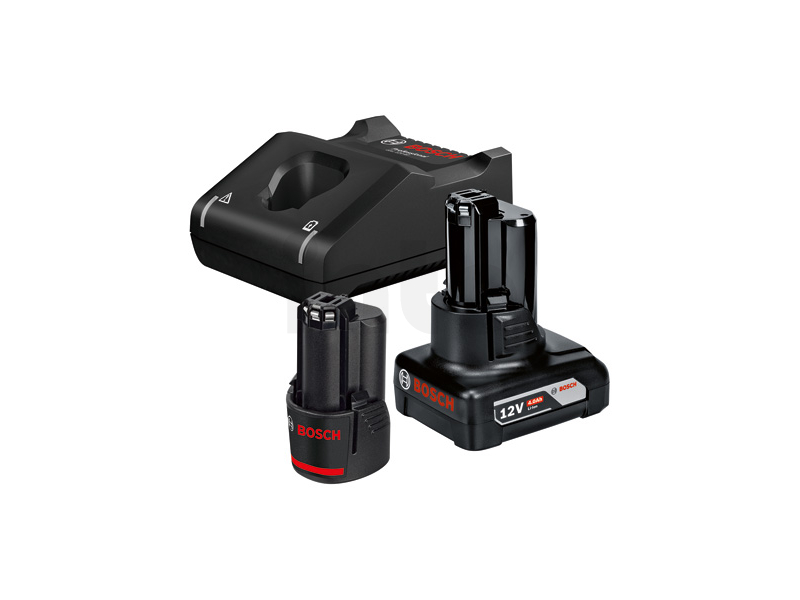 Startovací sada 1× GBA 12V 2.0Ah + 1× GBA 12V 4.0Ah + GAL 12V-40, Kombinace kompaktnosti a dlouhé výdrže 12V baterie s rychlou nabíječkou, GBA 12V 2,0 Ah kompaktní a lehký akumulátor a GBA 12V 4,0 Ah poskytující prodlouženou dobu chodu pro všechno 12V nářadí., GAL 12V-40: Vysoká rychlost nabíjení pro všechny 12V akumulátory. Nabití akumulátoru 12V 2,0 Ah z 0 na 80% za 24 min., Kompatibilní se všemi 12V akumulátory Bosch Professional,
