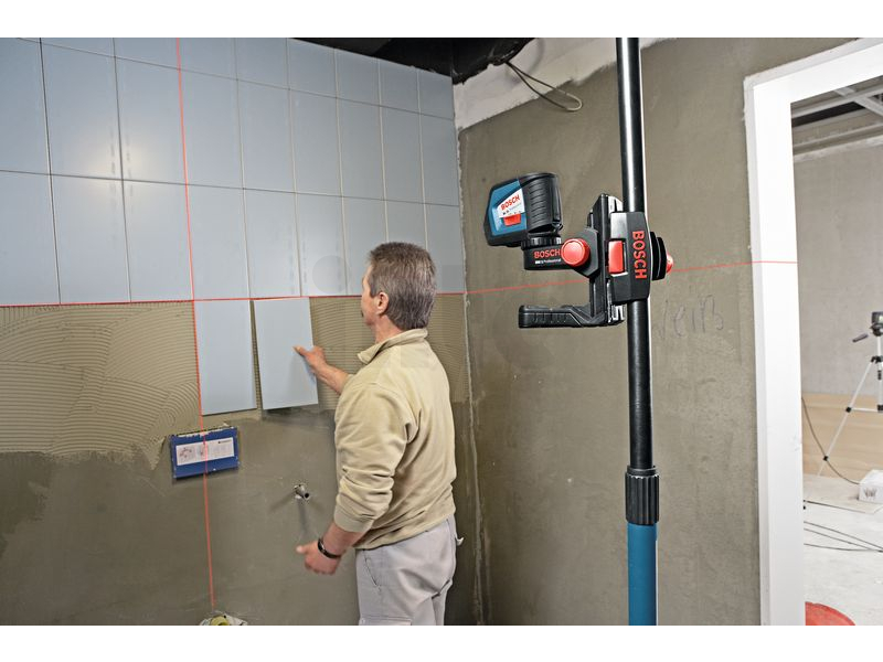 Teleskopická tyč BT 350, Robustní a s jednoduchou manipulací pro čárový a bodový laser, Jednoduchá a rychlá montáž, Vysoce mnohostranné použití díky držáku a kovovému úhelníku, Robustní a stabilní hliníková konstrukce, Kovový držák (číslo náhradního dílu 1 619 P04 420); Držák (číslo náhradního dílu 1 619 P04 421)