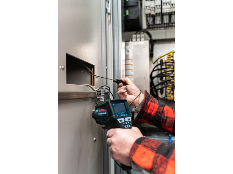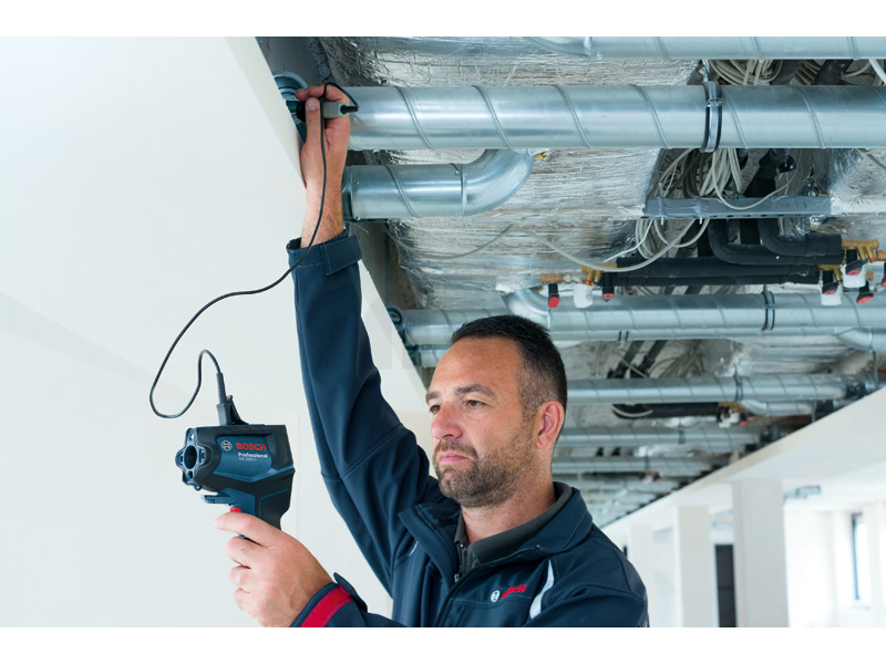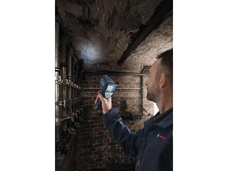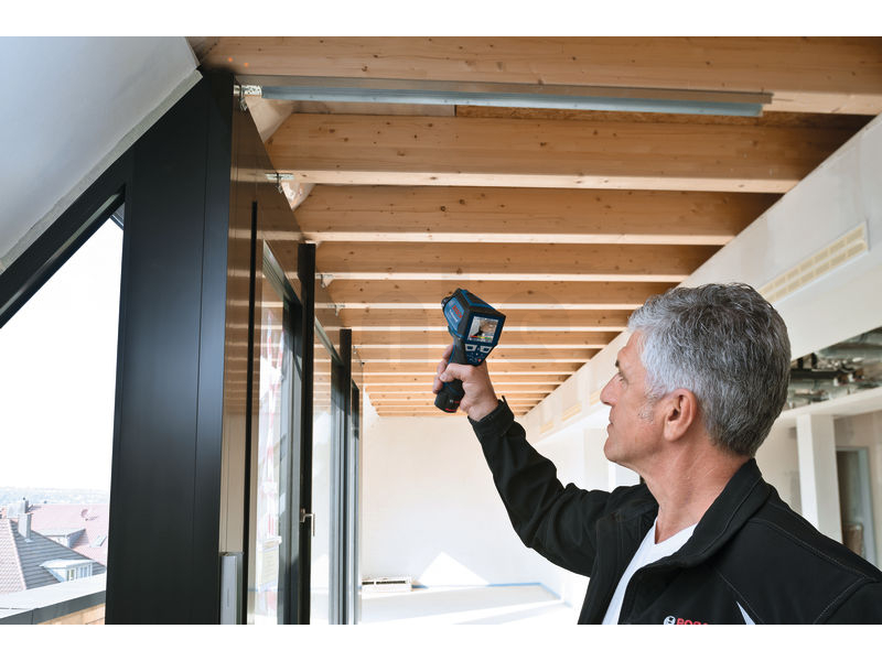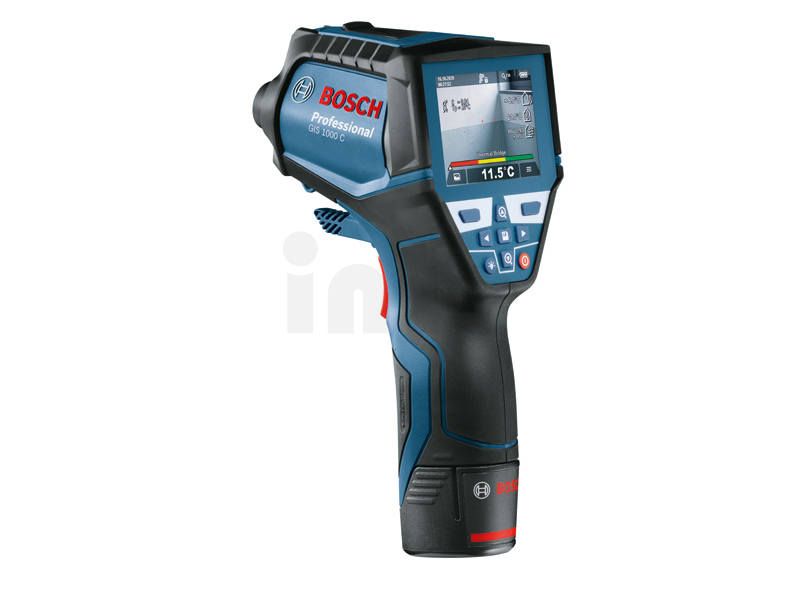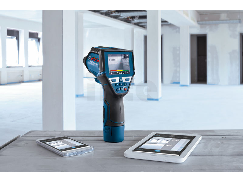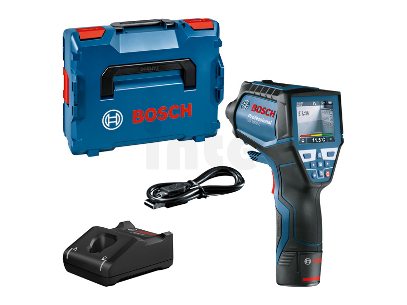 Termodetektor GIS 1000 C, Termodetektor GIS 1000 C Professional je hbité řešení na přesné měření a dokumentaci teplot a relativní vlhkosti. Přístroj během měření pomocí zabudované kamery pohodlně zaznamenává snímky pro okamžité znázornění příslušných hodnot. Aplikace Bosch ThermalOn připojená přes Bluetooth® zajišťuje rychlou dokumentaci podrobných dat a vzdálený přenos na jiná zařízení. Termodetektor zajišťuje záznam teploty a profesionálním uživatelům nabízí pět různých režimů pro komplexní povrchové a kontaktní měření teploty (s integrovanou funkcí K-typ), výpočet rosných bodů a tepelných mostů, a uživatelský režim pro nastavení vlastních hodnot. Profesionálové mohou termodetektor používat na celou řadu prací, od odhalování rizika výskytu plísní po kontrolu tepelných mostů i na přesné kontaktní měření odrazivých povrchů, kapalin a přímé teploty vzduchu. Kromě měření povrchových a kontaktních teplot čidlo termodetektoru GIS 1000 C Professional rychle sleduje okolní podmínky pro zajištění přesného měření pokojové teploty a relativní vlhkosti při ještě širší škále prací. Intuitivní uživatelské rozhraní umožňuje snadné ovládání a zajišťuje vysoce přesné výsledky s velkým rozsahem měření. GIS 1000 C Professional není vhodný pro lékařské účely. Rychlonabíječka GAL 12V-40 Professional (1 600 A01 9R3); L-BOXX 136 (1 600 A01 2G0); 1× akumulátor GBA 12V 2.0Ah (1 600 Z00 02X); Vložka na nářadí pro L-BOXX; Karta se stručným návodem; Kabel mikro USB (2 609 120 670)