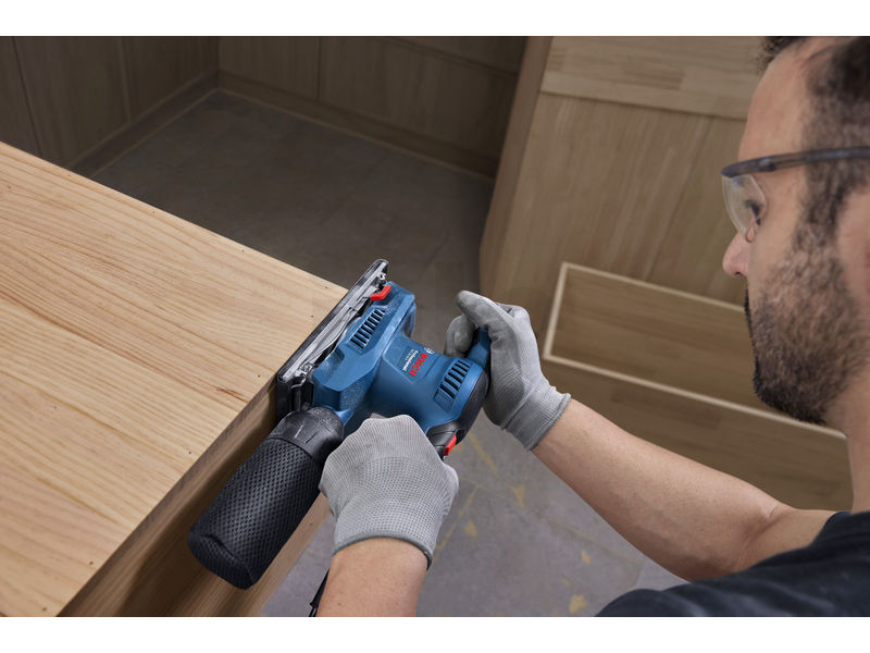 Vibrační bruska Bosch GSS 20-18 Professional je navržena tak, aby kombinovala výkon s pohodlím při práci. Díky nízké hodnotě vibrací maximálně 3,0 m/s² umožňuje tato bruska delší práci bez únavy a znecitlivění rukou. Optimální vyvážení nářadí usnadňuje broušení ve všech směrech, a to jednou nebo oběma rukama, čímž zvyšuje flexibilitu a efektivitu práce.