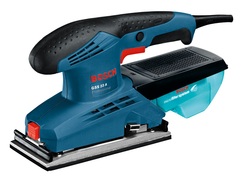 GSS 23 A Professional je spolehlivá, kabelem napájená vibrační bruska Bosch vhodná pro začátečníky, kategorie 230 mm. Robustní konstrukce a zesílený svorkový systém jsou zárukou odolnosti a maximální životnosti. Obsahuje vestavěný prachový sběrač s mikrofiltračním systémem Bosch a poskytuje nejvyšší míru extrakce prachu při práci. Díky ergonomickému designu se jedná o ideální nástroj pro použití při elementárních, každodenních úkonech. Je určená pro broušení, mezibroušení a broušení rámů, včetně finálních povrchových úprav. Tuto vibrační brusku lze použít na dřevo, dýhu, lak a plniva, včetně minerálů a akrylu. Je kompatibilní s odsávacím systémem Bosch Click & Clean. GSS 23 A Professional se rovněž vyznačuje měkkou rukojetí pro pohodlné ovládání.