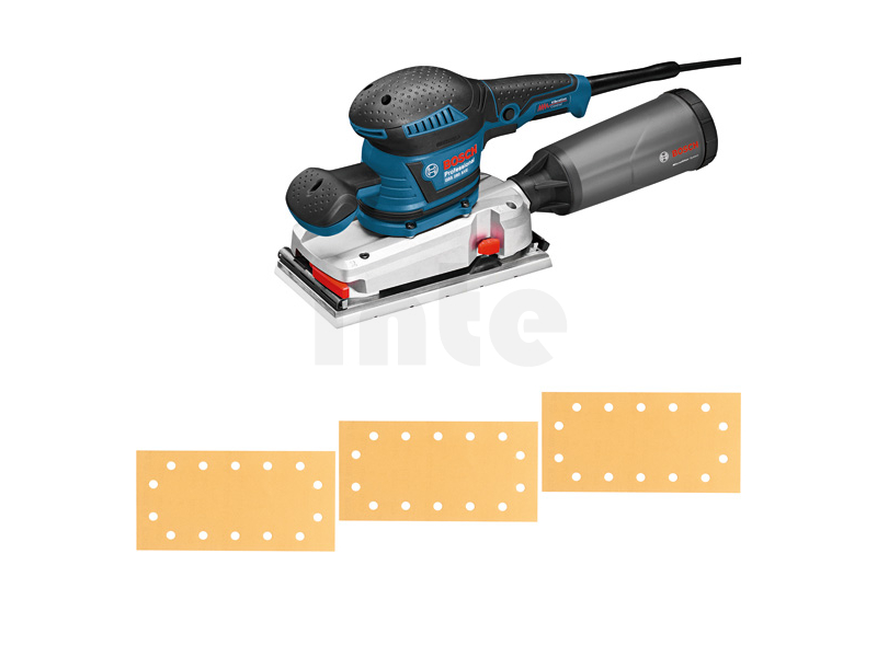 Vibrační bruska GSS 280 AVE, GSS 280 AVE Professional je síťová vibrační bruska od firmy Bosch kategorie 280 mm pro vysoce kvalitní opracování povrchu. Vyznačuje se konstrukcí s oddělenou brusnou jednotkou pro rovnoměrný přítlak zaručující ty nejlepší výsledky. Jedinečná vestavěná technologie zajišťuje tlumení vibrací na minimum a tím umožňuje nepřetržitou práci. Brusné papíry se k vibrační brusce snadno a dokonale připevňují pomocí podložky se suchým zipem a upínacího systému. Je určena na broušení, mezibroušení a broušení rámů i na opracování povrchů a hodí se na dřevo, dýhu, lak, plniva i minerály a akryl. Je kompatibilní se systémem Bosch Click & Clean. GSS 280 AVE Professional zahrnuje rovněž nádobu na prach s vestavěným mikrofiltračním systémem Bosch i možnost volby rychlosti. Kartonová krabice; 1× brusný list C470, Best for Wood + Paint, 80 (dostupný samostatně jako sada 10 ks: 2 608 605 267); 1× brusný list C470, Best for Wood + Paint, 120 (dostupný samostatně jako sada 10 ks: 2 608 605 268); 1× brusný list C470, Best for Wood + Paint, 180 (dostupný samostatně jako sada 10 ks: 2 608 605 269); Přídavná rukojeť (2 602 026 175)