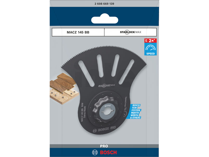 Rychlé řezání abrazivních dřevěných materiálů! Profesionální list pro interiérové montáže – segmentový plátek PRO MACZ 145 BB přináší vašemu multifunkčnímu nářadí přesnost a kvalitu řezání. Díky maximální rychlosti a účinnosti upínání je Starlock je ideální pro přímé řezy na podlahových prknech, panelech a rámech bez pálení materiálu. Segmentový pilový list PRO MACZ 145 BB je kvůli pevnosti a odolnosti vyrobený z bimetalu. Velké zakřivení plátku zajišťuje rychlé a přesné řezy do dřevěných stavebních materiálů. rozvedené zuby plátku vám usnadní řezání materiálu bez jeho pálení.