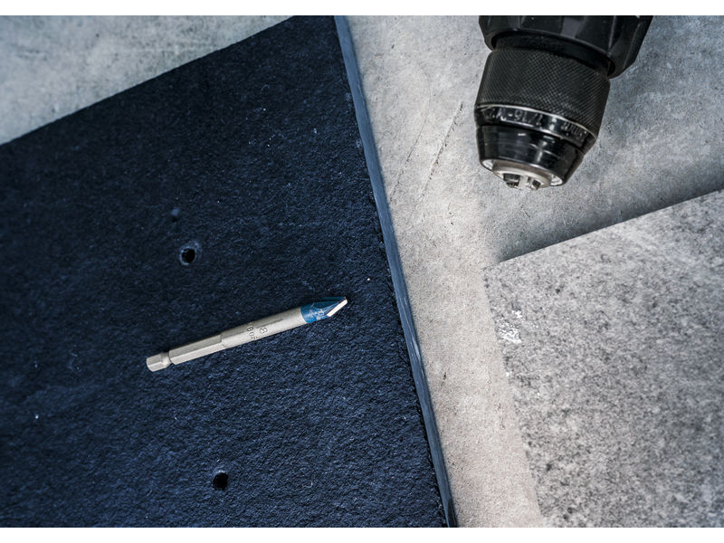 Dlouhá životnost při vrtání do tvrdých dlaždic! Vzhledem k tomu, že obklady jsou stále větší i tvrdší, vrtání otvorů do nich je pro vrtáky na obklady velmi náročné. Proto společnost Bosch vyvinula vrták EXPERT HardCeramic, který je schopen vrtat do tvrdé keramiky za sucha a vydrží mnohem déle než naše standardní vrtáky na dlaždice. Vrták Bosch EXPERT HEX-9 HardCeramic je určen pro vrtání do dlažby a dokáže vrtat otvory do tvrdých dlaždic bez použití maziva nebo chladiva.