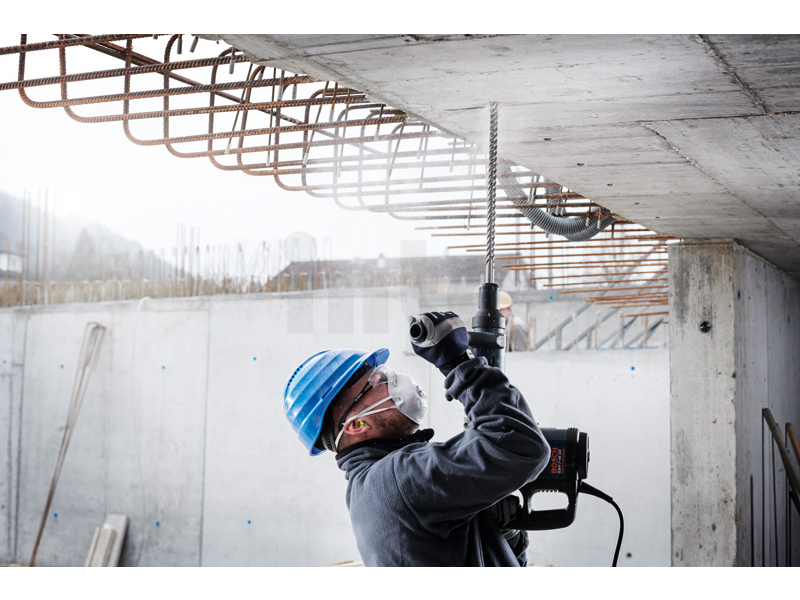 Dlouhá životnost při práci v železobetonu! Vrtání do železobetonu je náročná práce a tradičně si na vrtácích do kladiv vybírá svou daň. Dokonce i vrtáky se čtyřmi břity se rychle opotřebovávají. Kvůli výměně a dodávkám příslušenství tak vznikají prostoje. Celokarbidová hlava vrtáku EXPERT SDS max-8X je pokročilá konstrukce se 4 břity vyrobená z jednoho kusu toho nejtvrdšího kovu: Nezasekává se a do materiálu vrtá s chutí. Stavebním profesionálům, kteří pravidelně vrtají do betonu a železobetonu, například kvůli instalaci kotev pro velké zatížení nebo kvůli nastavení výztuže, nabízí vrták Bosch EXPERT SDS max-8X do kladiv bezkonkurenční výkon, spolehlivost a dlouhou životnost. Jedná se o příslušenství EXPERT pro vrtací kladiva SDS max.