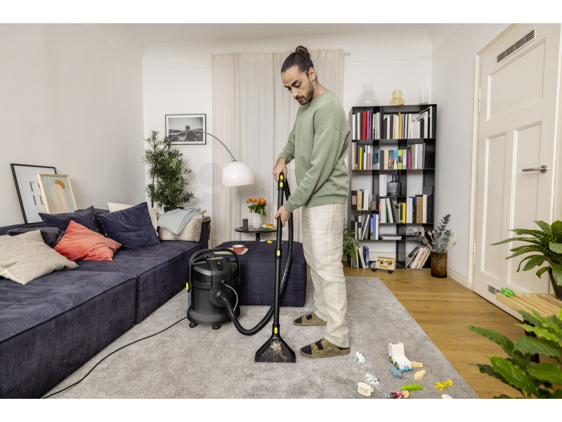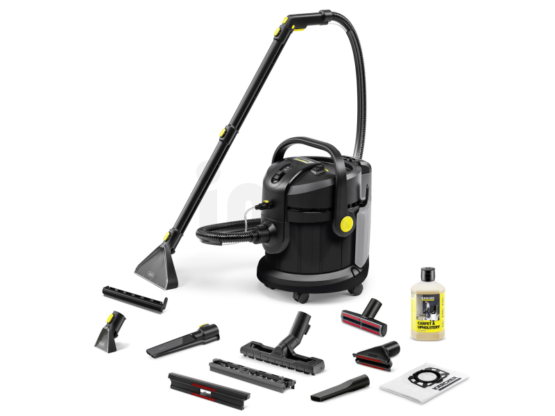 • Všestranně použitelný buď pro nástřikové odsávání textilních povrchů, nebo pro mokré a suché vysávání koberců a tvrdých podlah s vhodným příslušenstvím.