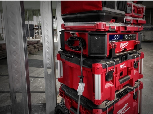 Milwaukee rádia mají nejen skvělý zvuk, ale i konstrukci navrženou tak, aby přežila prach, nárazy a déšť. PACKOUT kompatibilita znamená, že může být rádio: