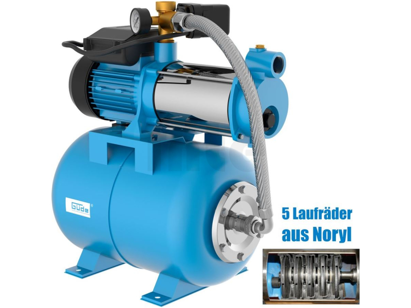 Automatická domácí vodárna Güde, určená k čerpání (čisté) užitkové vody za účelem zásobování domácnosti nebo zavlažování zahrady.
