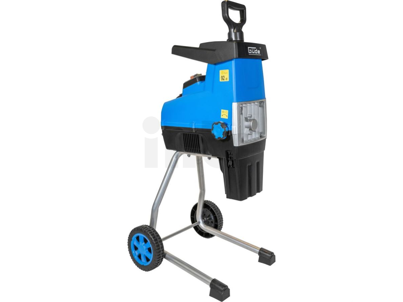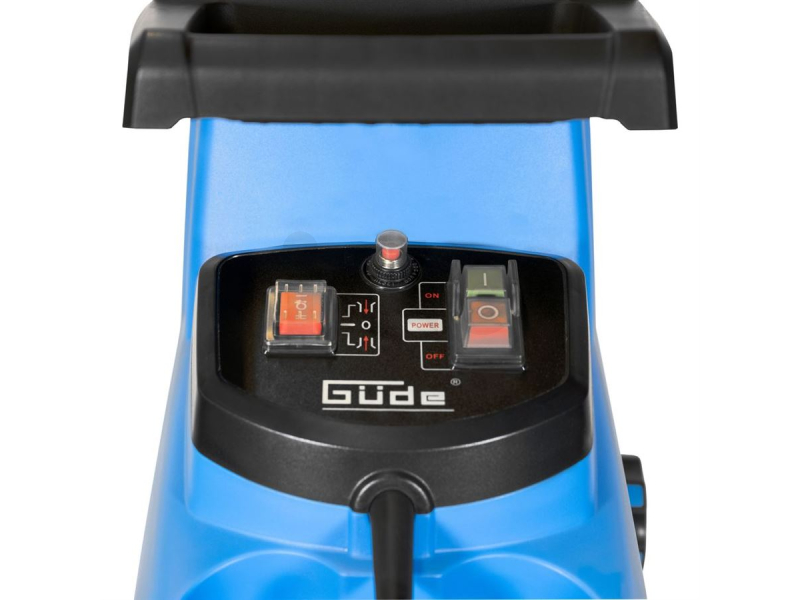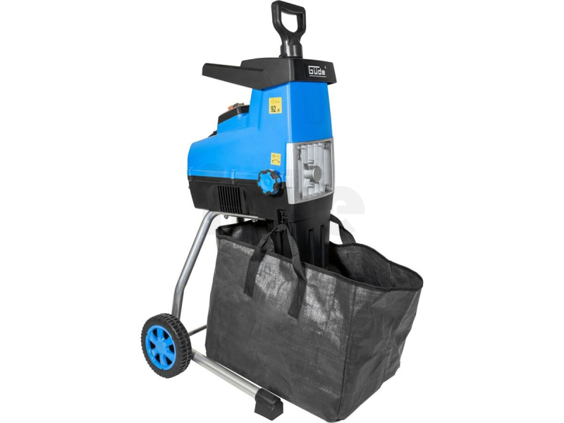 Výkonný elektrický štěpkovač Güde, určený k ekologické likvidaci dřevnatého zahradního odpadu.