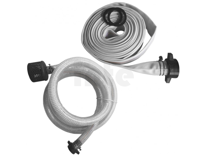 Souprava sací a výtlačné hadice, určená pro benzinové čerpadlo GMP 15.22 (94501). Složení sady: 4 m sací hadice, 10 m výtlačná hadice, sací koš, hadicové koncovky 1 1/2'' (vč. těsnění), hadicové spony (3). Hmotnost: 3,2 kg.