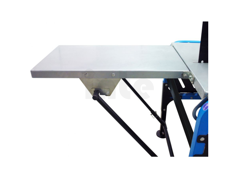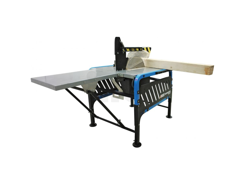 Konstrukce: robustní ocelový rám, velký pracovní stůl (-> rozměry d x š: 1.000 x 760 mm; včetně prodlužovacího stolku 720 x 400 mm), podélný doraz, přípojka odsávání, stojné nohy s výsuvnými patkami (-> k vyrovnání případných nerovností, např. při venkovním použití; max. délka vyložení: 110 mm).