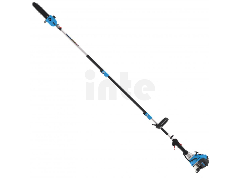 Benzínová vyvětvovací pila Güde, určená k prořezávání vzrostlých stromů ze země.