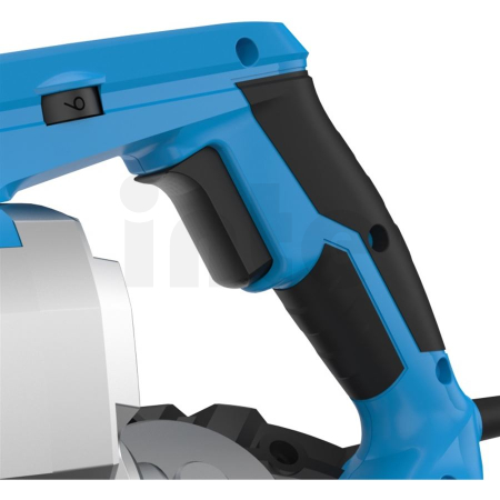 Konstrukce: robustní kryty pilového pásu, polohovatelná přídavná rukojeť, LED svítilna.